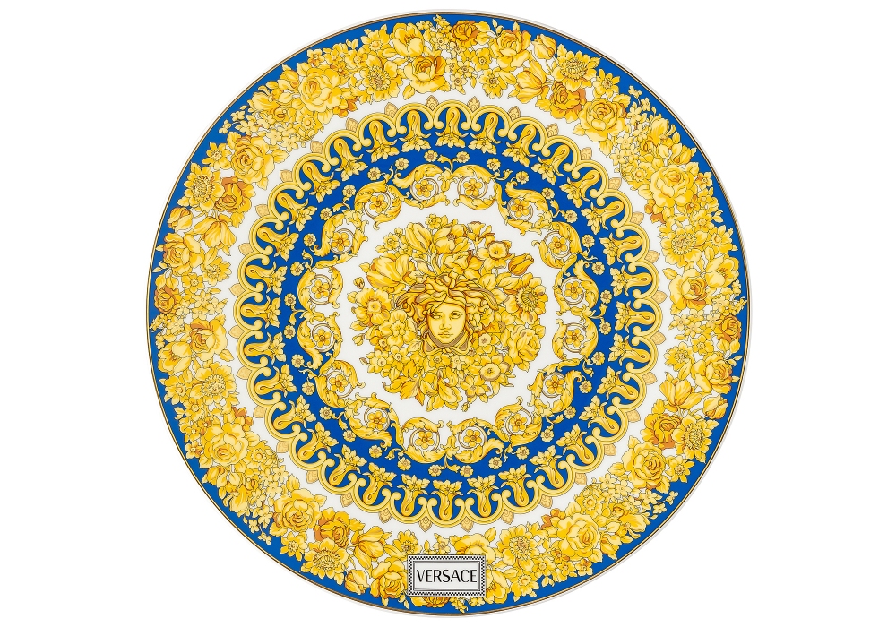 Medusa Rhapsody Blue conçue par Versace en collaboration avec Rosenthal est une assiette de présentation en porcelaine.