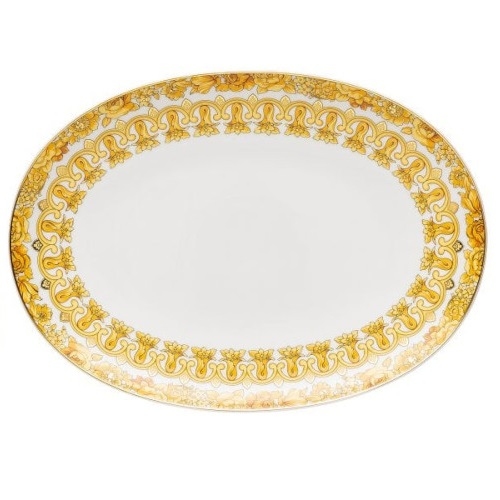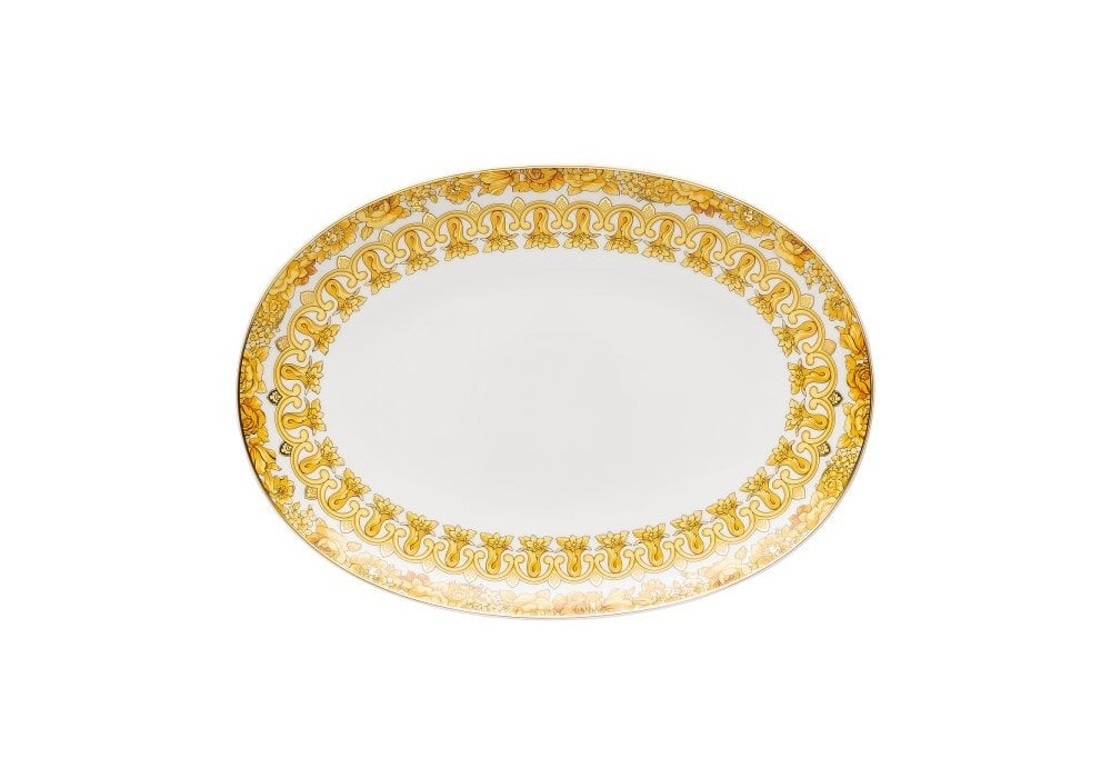 Medusa Rhapsody conçue par Versace en collaboration avec Rosenthal est une assiette ovale en porcelaine.
