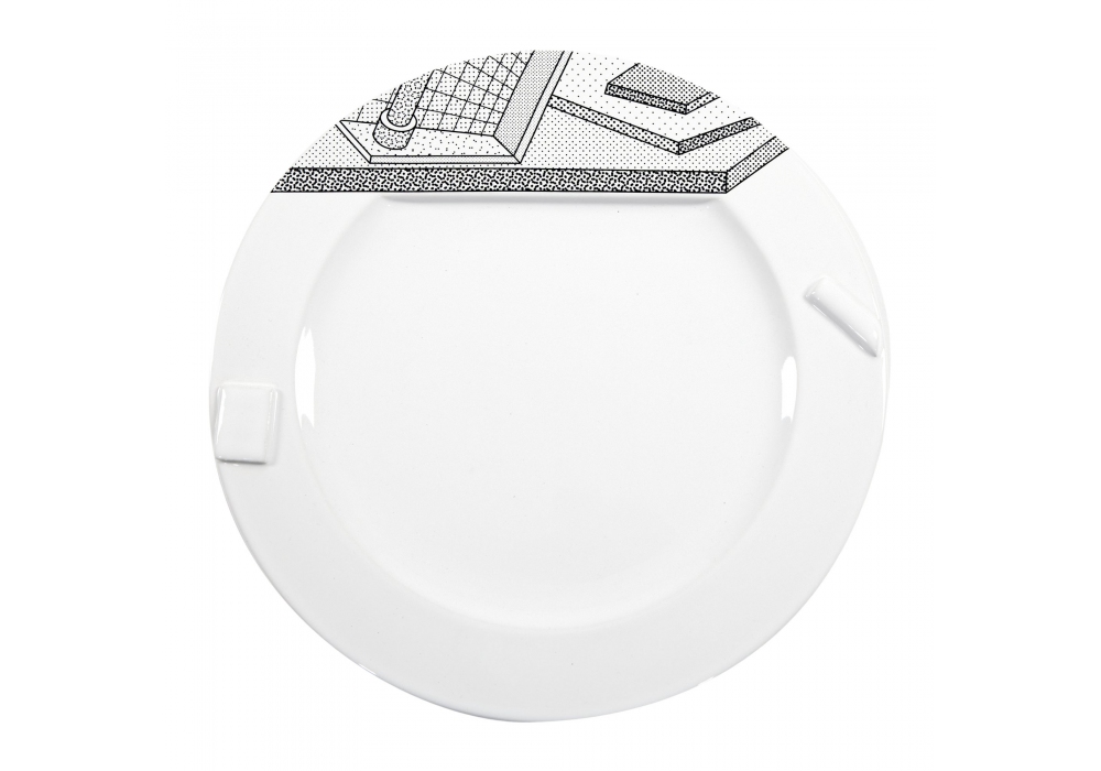 Lettuce conçue par Ettore Sottsass pour Memphis Milano est une assiette en céramique blanche avec décorations.