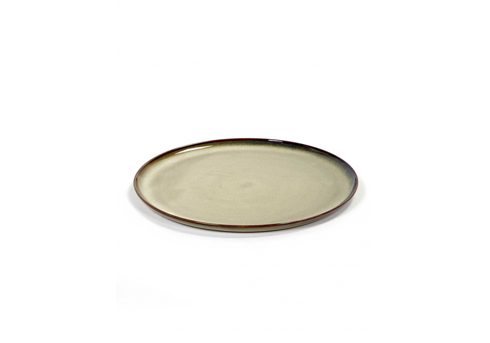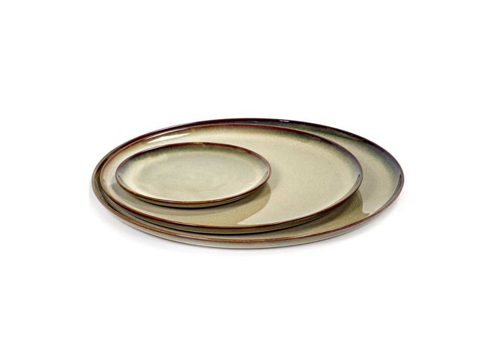 Plate conçue par Anita Le Grelle pour Serax est une assiette circulaire en grès disponible en différentes finitions; gris brumeux, bleu fumé, rouille, bleu clair ou bleu foncé. La plaque est disponible en trois tailles différentes.