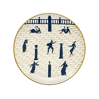 Passeggiata Archeologica Gio Ponti conçue par Gio Ponti pour Ginori 1735 est une assiette décorée dont le dessin évoque le goût du XVIIIe siècle des voyageurs du Grand Tour. Disponible en 2 finitions.