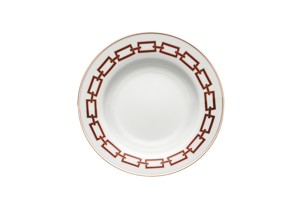 Piatto Fondo Catene Scarlatto conçue par Ginori 1735 est une assiette creuse décorée.