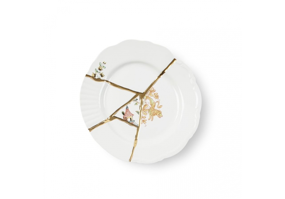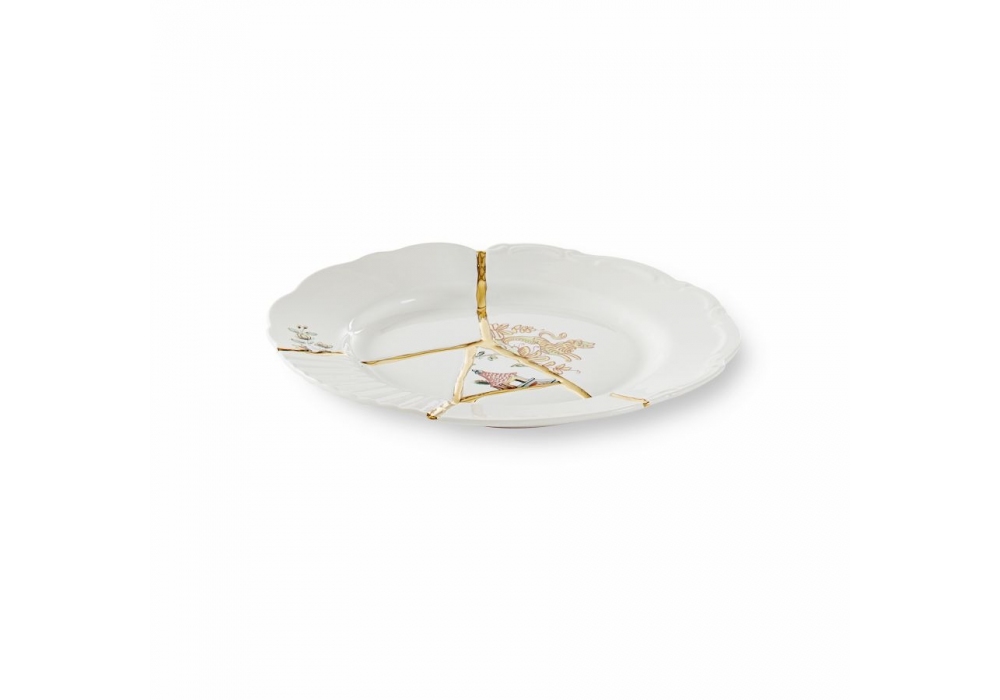 Kintsugi conçue par Marcantonio pour Seletti est une assiette à fruits en porcelaine blanche décorée de divers pigments. Kntsugi est disponible en différents modèles.