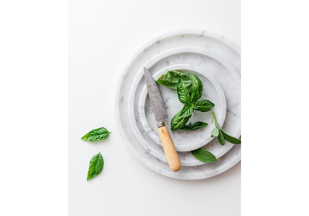 Lasciami Stare - Assiette conçue par MarmoLove est une assiette ronde design composée à 100 % de marbre blanc de Carrare poli. Disponible en différentes dimensions.