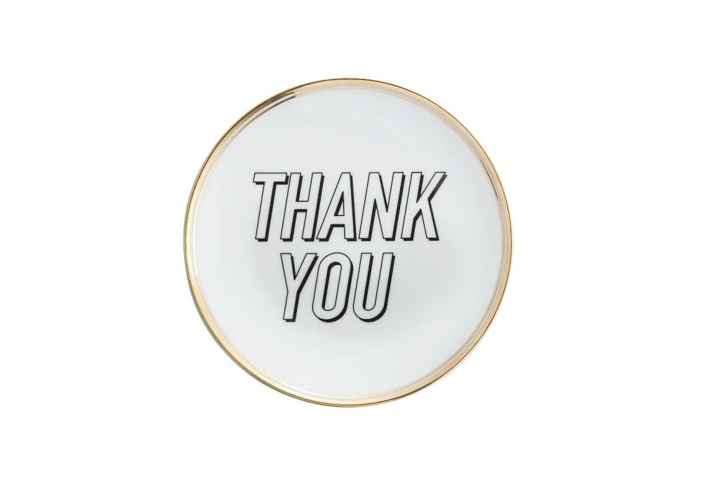 Thank You conçue par Bitossi Home est une assiette en porcelaine avec un décalque de bord doré. Convient aux lave-vaisselle Max 250 lavages. Ne convient pas au micro-ondes.
