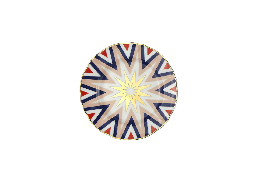 Folgore signé par le design LaTigre pour Bitossi Home est une assiette à dessert en porcelaine avec des décors et des détails dorés. Convient au lave-vaisselle et à un maximum de 250 lavages. Ne convient pas au micro-ondes.