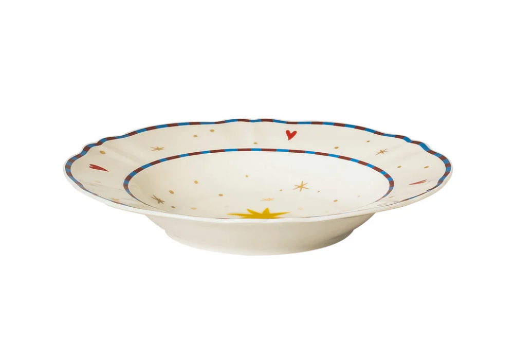 Stella signé par le design Pangea pour Bitossi Home est une assietteà creuse en porcelaine avec des décors et des détails dorés. Convient au lave-vaisselle et à un maximum de 250 lavages. Ne convient pas au micro-ondes.