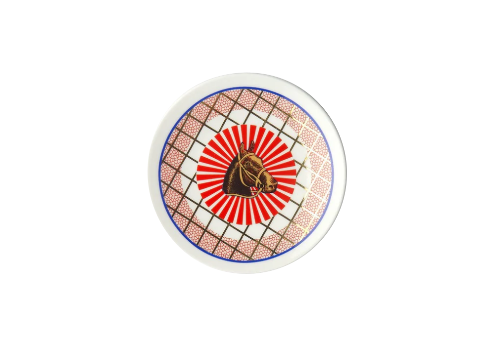 Cavallo signé par le design Sam Baron pour Bitossi Home est une petite assiette en porcelaine avec des décors et des détails dorés. Convient au lave-vaisselle et à un maximum de 250 lavages. Ne convient pas au micro-ondes.
