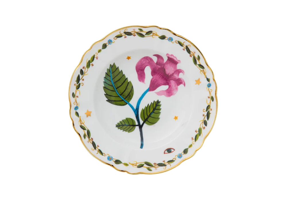 Profumo signé par le design Aitch.Ro pour Bitossi Home est une assiette creuse en porcelaine avec des décors et des détails dorés. Convient au lave-vaisselle et à un maximum de 250 lavages. Ne convient pas au micro-ondes.