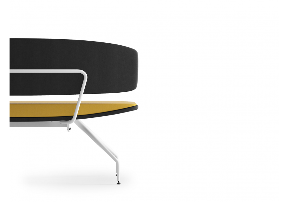 Onda conçu par R&D Sitlosophy pour Sitlosophy est un banquette 2 places avec base à 4 pieds en tube conique peint en blanc avec pieds réglables, rembourrage en mousse de polyuréthane flexible façonnée avec revêtement en cuirs, tissus ou éco-cuirs variés.