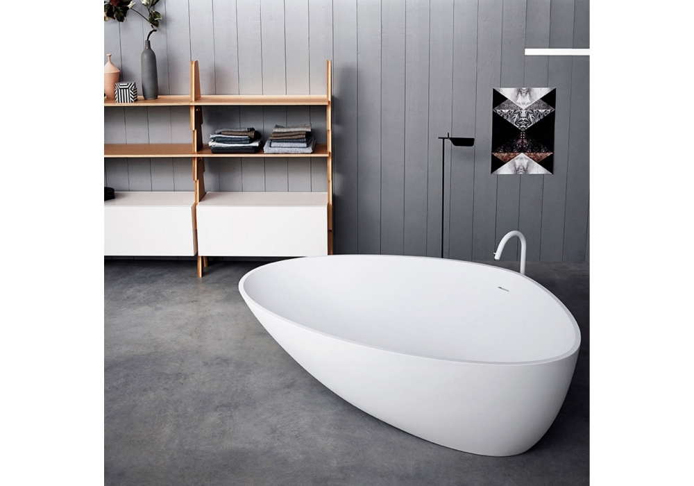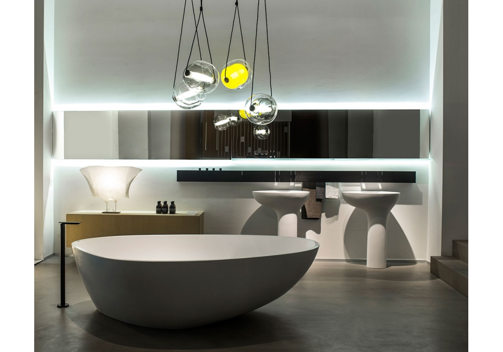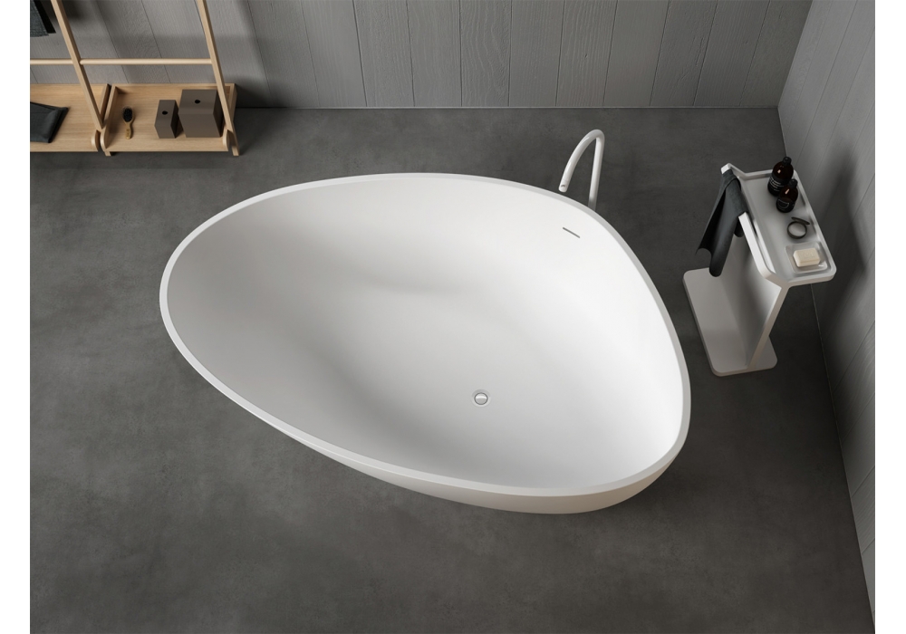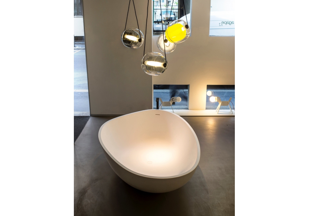 Drop conçue par Benedini Associati pour Agape, est une baignoire en Cristalplant® biobased ou en marbre dans différentes finitions. Avec trou de trop-plein et sans trou pour robinetterie.