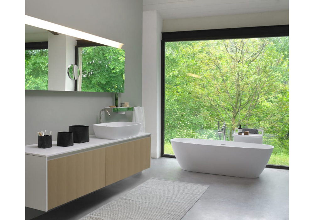 Normal conçue par Benedini Associati pour Agape, est une baignoire en Cristalplant® biobased en différentes finitions, avec trou de trop-plein. Sans trous pour robinetterie, elle peut être posée au mur ou au sol. L'utilisation du siphon est obligatoire.