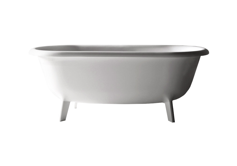 Ottocento Small conçue par Benedini Associati pour Agape, est une baignoire réalisée en Cristalplant® biobased en différentes finitions. Elle est soutenue par des pieds du même matériau. Equipée d'un drain et d'un circuit de trop-plein apparent.
