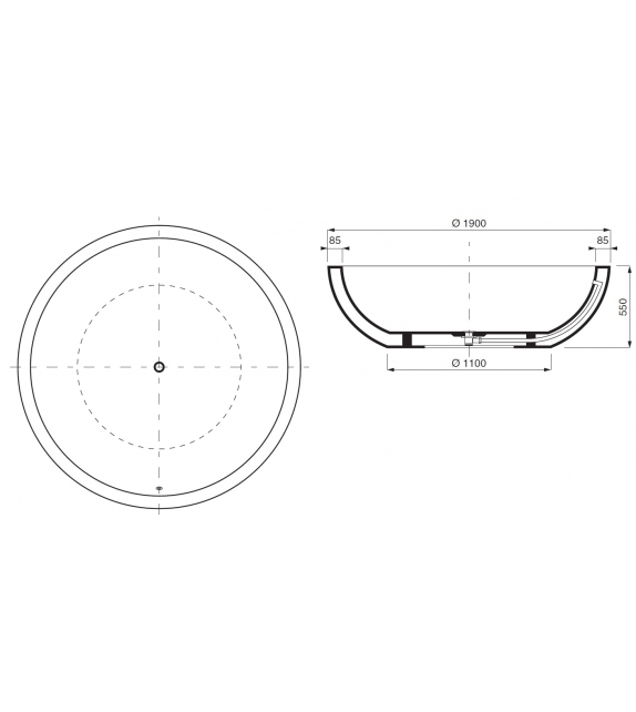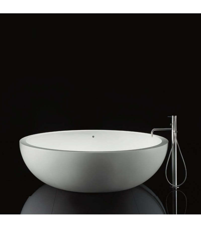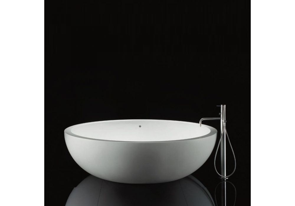 Tevere conçue par Claudio Silvestrin pour Boffi est une baignoire monobloc en Corian® blanc thermoformé.