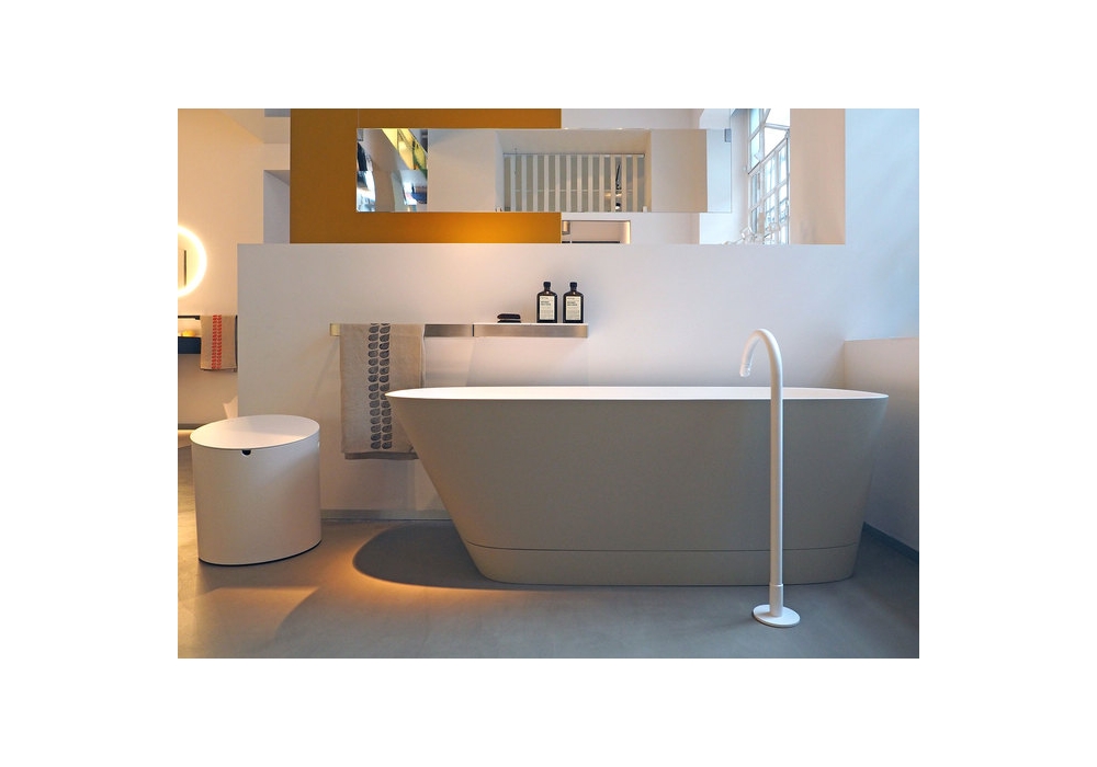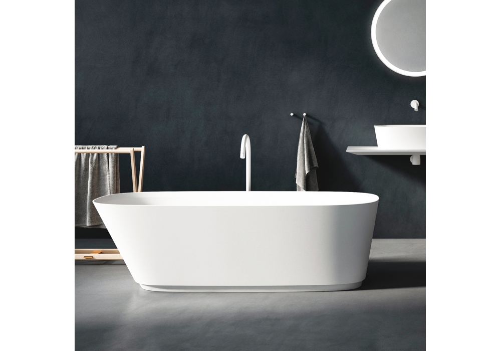 Neb conçue par Benedini Associati pour Agape est une baignoire en Cristalplant® biobased en différentes finitions, sans trou pour robinetterie, avec évacuation libre. Complet avec évacuation siphonnée.