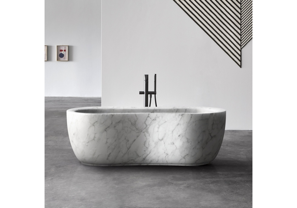 Fida conçue par Marco Di Paolo pour Antonio Lupi est une baignoire ovale en Flumood qui peut être peinte à l'extérieur dans toutes les couleurs de notre collection d'échantillons, en Colormood qui peut être peinte à l'intérieur et à l'extérieur, ou en pierre.