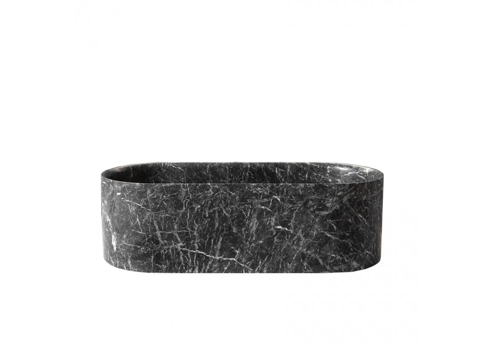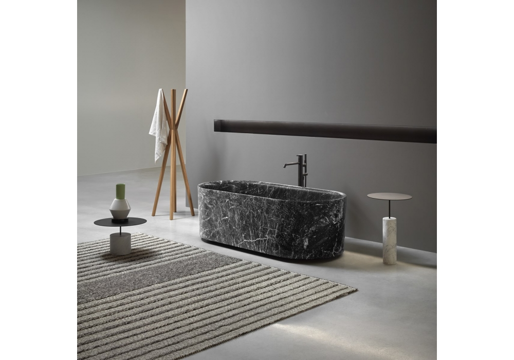 Nebula conçue par Antonio Lupi est une baignoire ovale en pierre, dotée d'un drain avec système de drainage à pression clic-clac et d'un bouchon en marbre.
