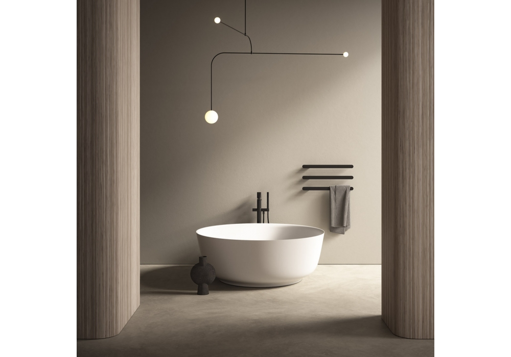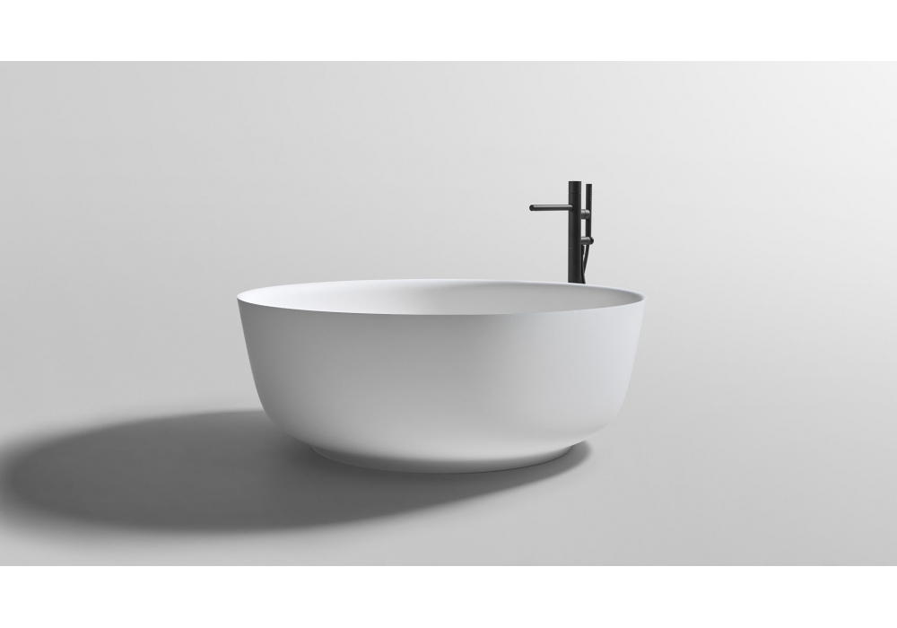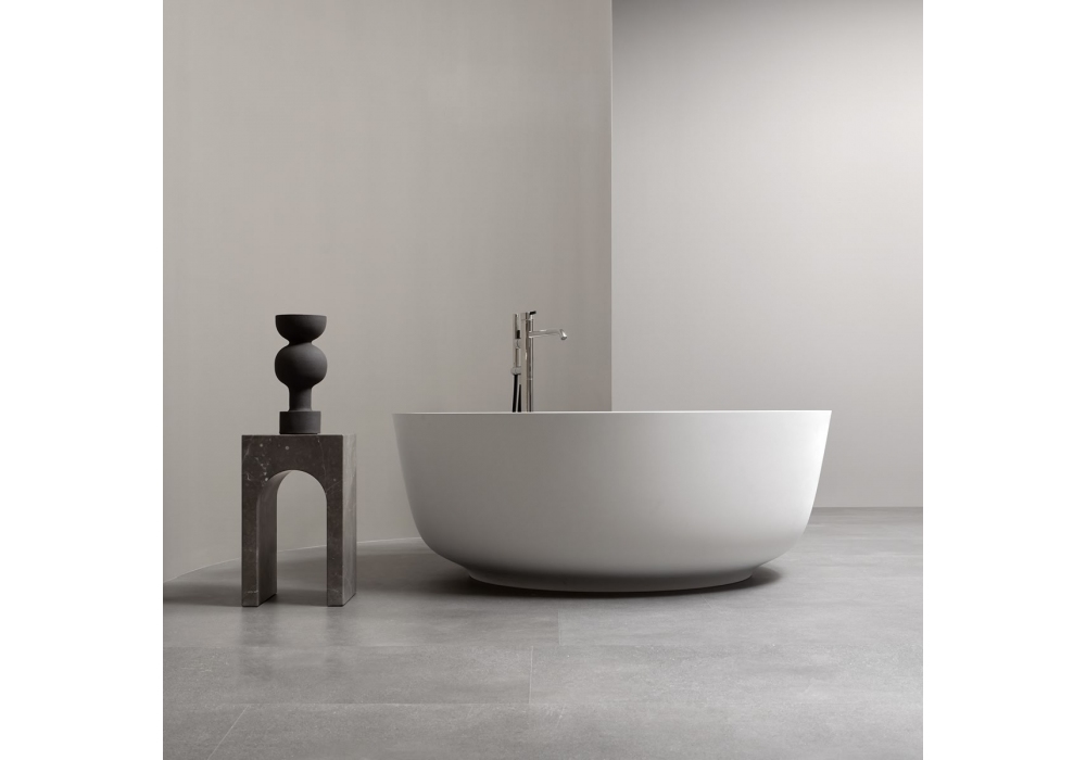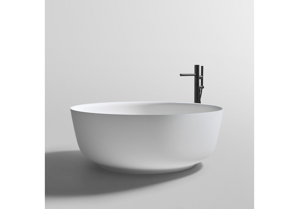 Orion conçue par Mario Ferrarini pour Antonio Lupi est une baignoire ronde en pierre ou en Cristalplant, complète avec drain.