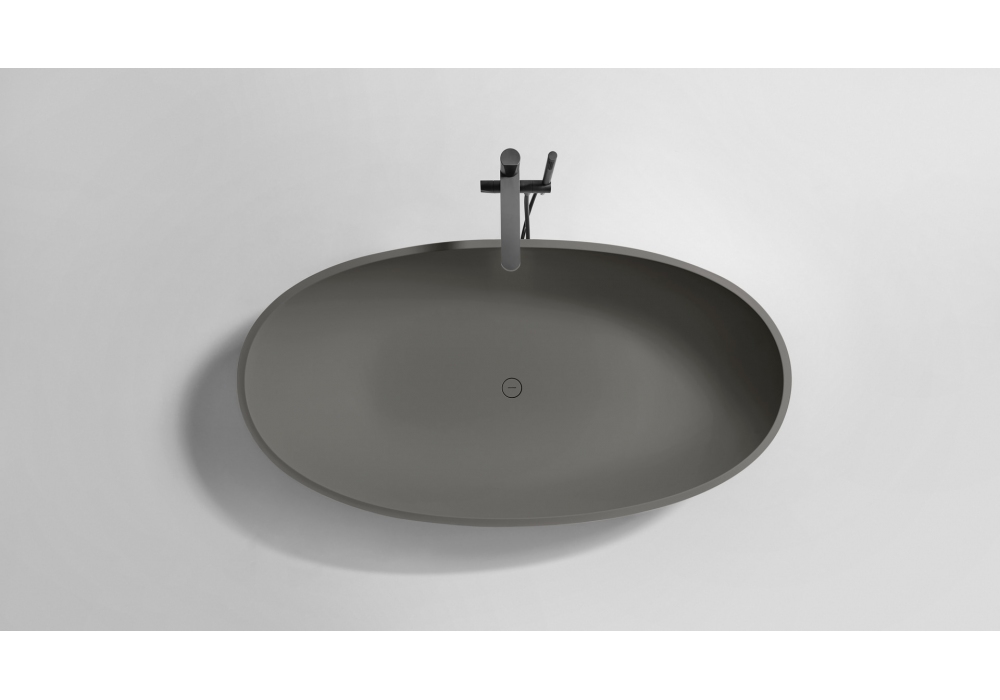 Reflex Colormood conçue par Antonio Lupi est une baignoire ovale en Flumood, peignable à l'extérieur, en Colormood peignable à l'intérieur et à l'extérieur, complète de bonde avec trop-plein automatique invisible, siphon et tuyau flexible.