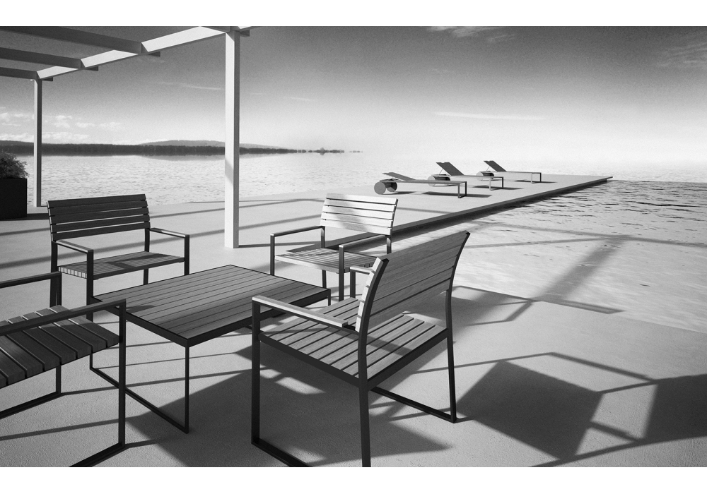 Garden Lounger conçu par Broberg & Ridderstråle pour Röshults est un bain de soleil avec structure en acier inoxydable anthracite et teck. Comme accessoire, il est possible d'ajouter un coussin dans différents revêtements.