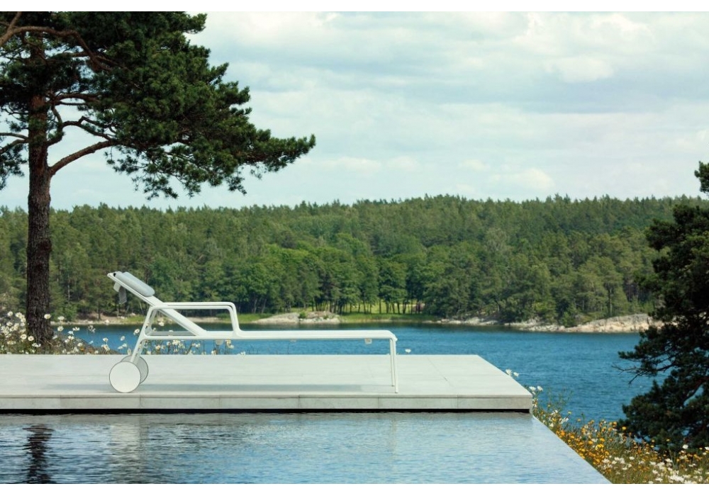 Park Life, conçu par Jasper Morrison pour Kettal, est une chaise longue d'extérieur avec une structure en aluminium peint et une coque en tissu. Les coussins sont rembourrés et recouverts de tissu pour une utilisation en extérieur. Park Life est disponible dans différentes finitions de structure et de tissu.