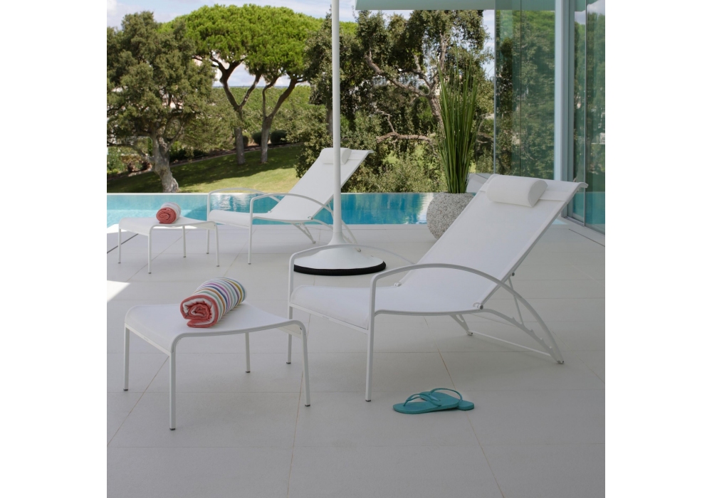 QT conçue par Kris Van Puyvelde pour Royal Botania est une chaise pliable avec structure en acier inoxydable et revêtement en Batyline® réalisée en différentes finitions. Coussin d'appui-tête et repose-pieds inclus.