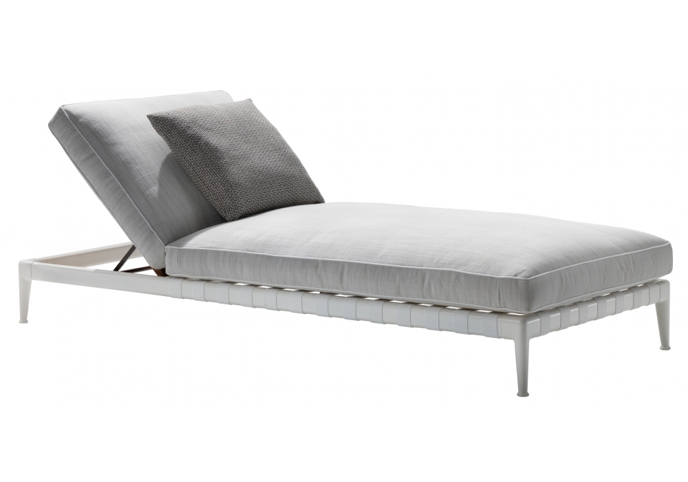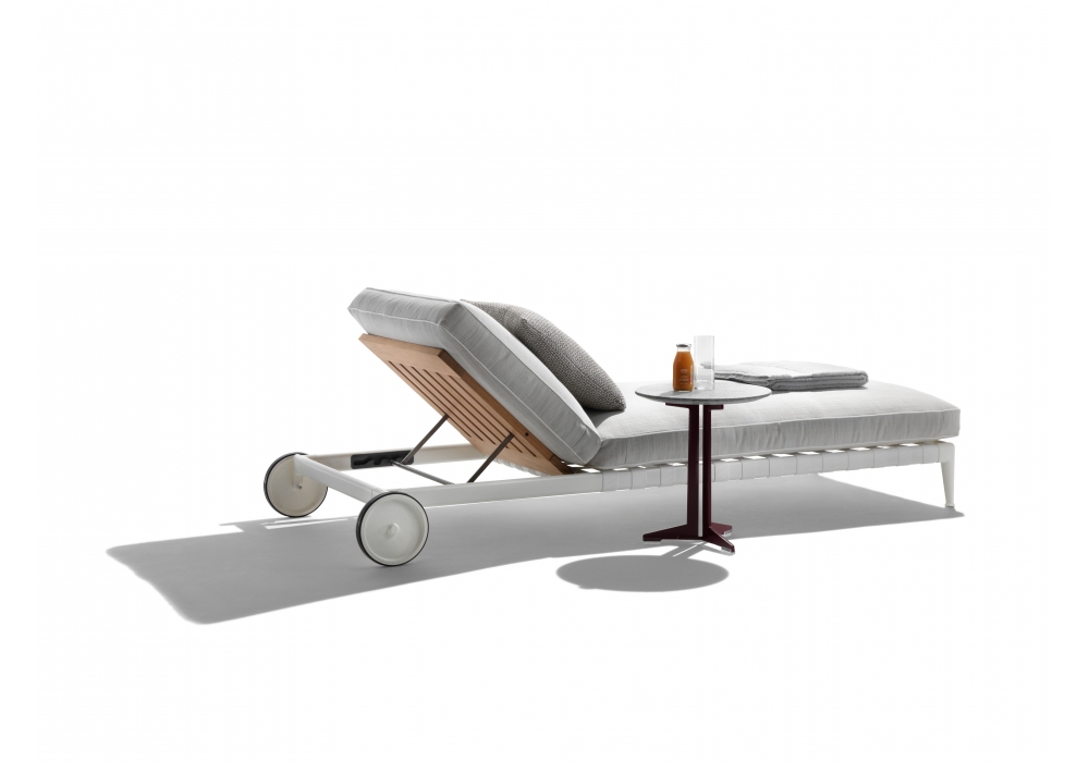 L'Atlante conçue par Antonio Citterio pour Flexform est une chaise longue avec structure en aluminium, dossier en iroko massif et assise à sangles élastiques. Les coussins sont rembourrés de polyester et recouverts de tissus d'extérieur. La chaise longue est disponible avec des pieds ou avec des roues.