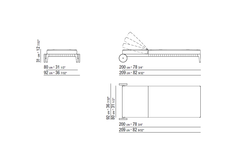 | Dimensions | • 200 x 80 x H 31 cm; • 209 x 92 x H 31 cm |