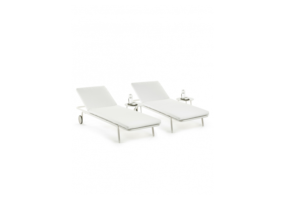August conçu par Vincent Van Duysen pour Serax est un transat d'extérieur, avec structure quadrangulaire en aluminium dans les finitions ; eucalyptus vert, noir ou sable. Structure équipée de roues pour faciliter le mouvement. August est disponible dans la version avec ou sans coussins.