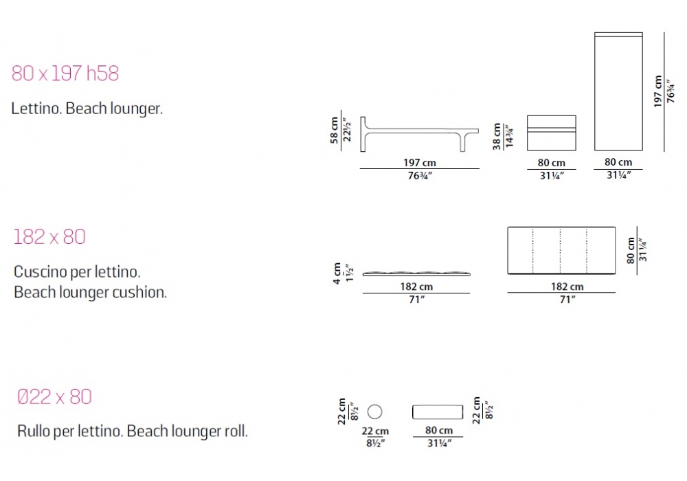 | Dimensions | 197 x 80 x H 58 cm |