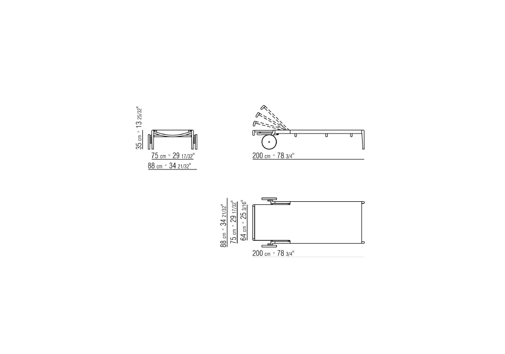| Dimensions | • 88 x 200 x H 35 cm |
