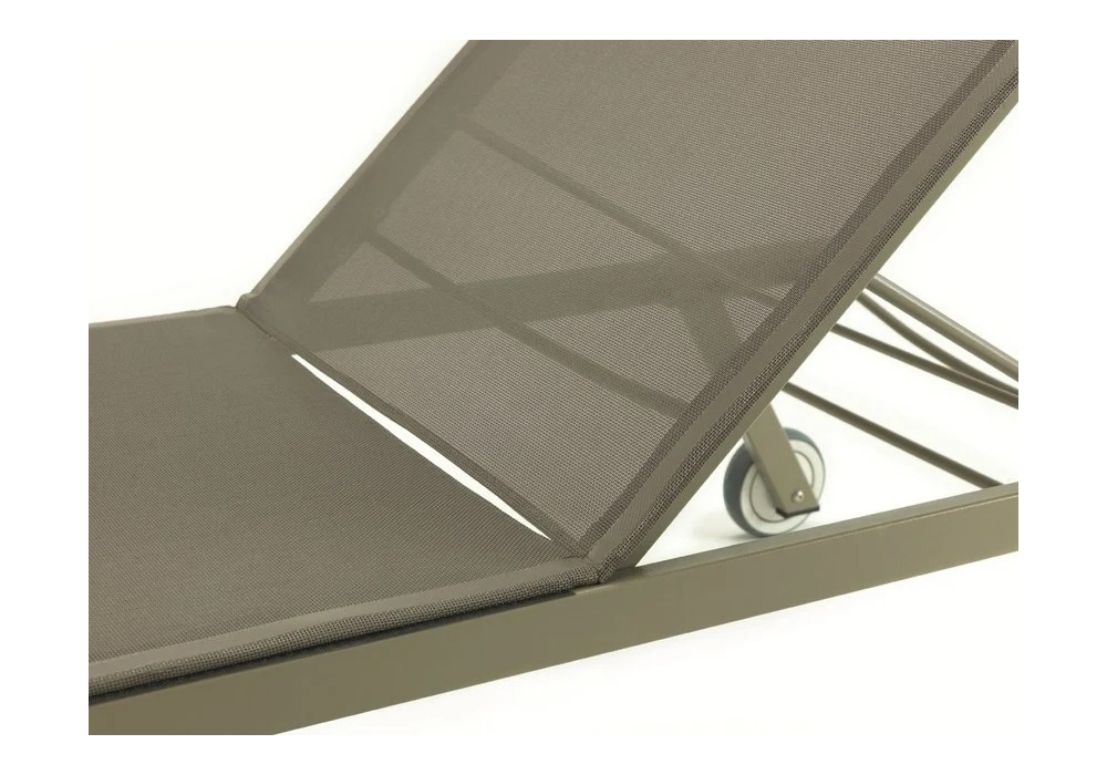 Elisir produit et signé par Ethimo est un lit bébé en métal avec revêtement en tissu ethitex gris tourterelle et ivoire.