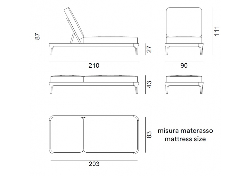 Mediterraneo conçu par Francesco Meda pour Gervasoni est un bain de soleil réalisé avec structure en teck, dossier inclinable et matelas avec revêtement en tissu déhoussable.