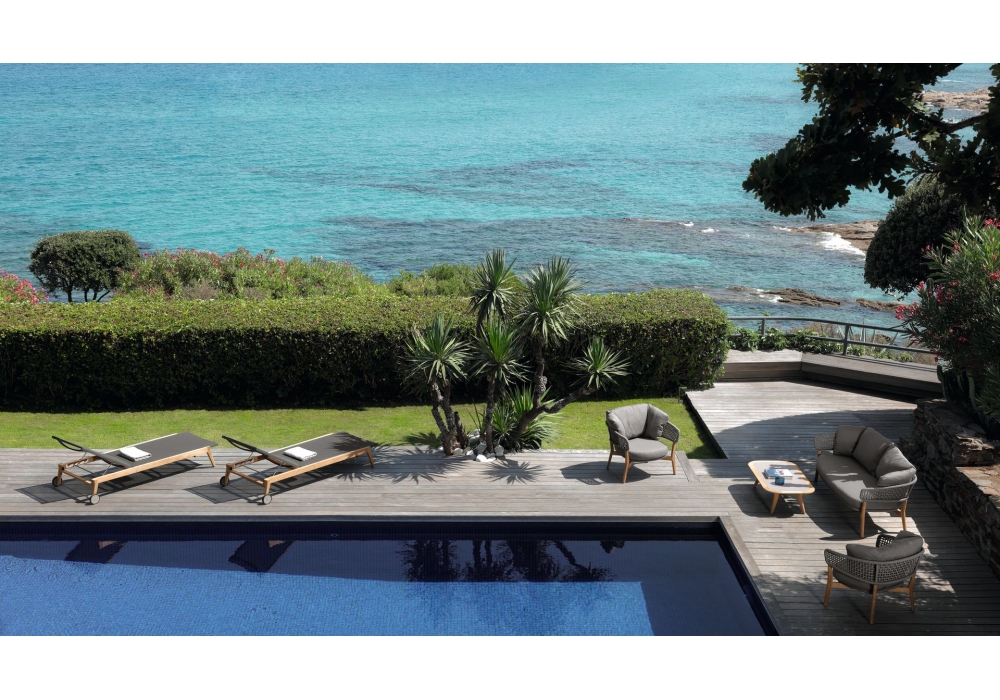 Moon Teak conçu par Cristian Visentin pour Talenti est un transat avec structure en bois, assise et dossier en tissu textile. Disponible en différentes finitions et possibilité d'ajouter un coussin complet.