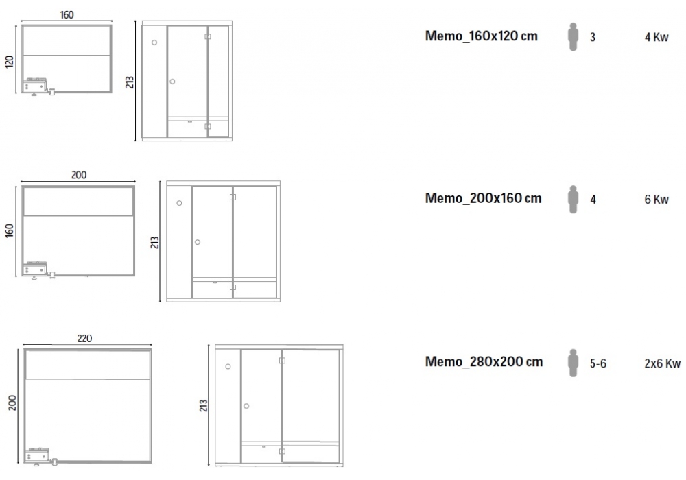 | Dimensions | L 160 x W 120 x H 213 cm; L 200 x W 160 x H 213 cm; L 220 x W 200 x H 213 cm |