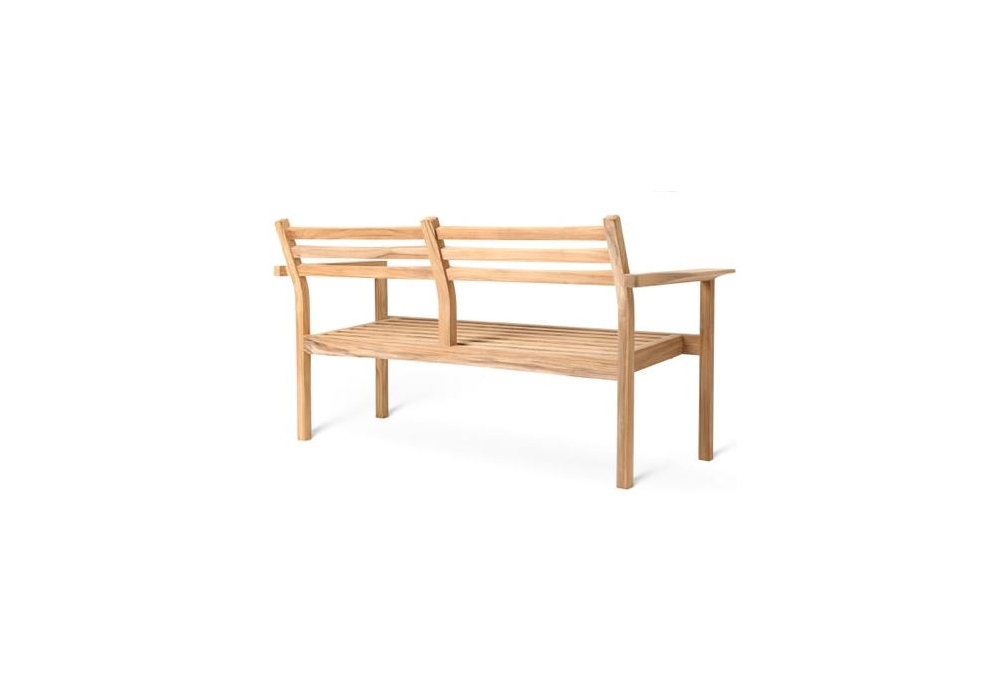 AH701 conçu par Alfred Homann pour Carl Hansen & Søn est un banc lounge d'extérieur avec structure en bois de teck massif. Disponible avec ou sans coussins d'assise (AH701S) et coussins de dossier (AH701B ensemble de 2) recouverts de tissu Agora Life Oat 1760.