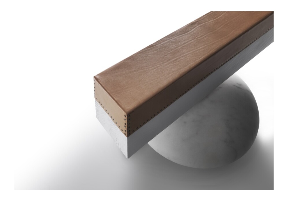 Pavè Log conçu par Enzo Berti pour Kreoo est un banquette avec base composée de deux "galets" de marbre de différentes finitions et assise en placage de mélèze ou recouvert de cuir naturel. Sur demande, il est possible de personnaliser le siège dans les couleurs RAL avec une finition brillante. L'assise et la base sont reliées par un élément de fixation en métal. Disponible en différentes dimensions.