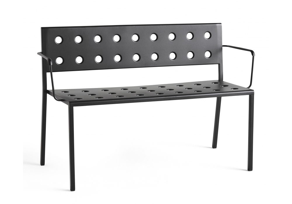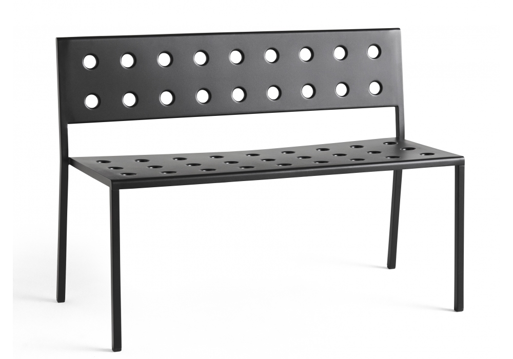 Balcony conçu par Ronan & Erwan Bourrollec pour Hay est un banc d'extérieur en acier peint par poudrage avec revêtement à deux composants; un apprêt extérieur et une couche de poudre qui constituent une barrière contre les éléments corrosifs, ce qui le rend adapté à une utilisation extérieure. Disponible en différentes finitions et tailles. Sur demande, il est possible d'ajouter un coussin de siège.
