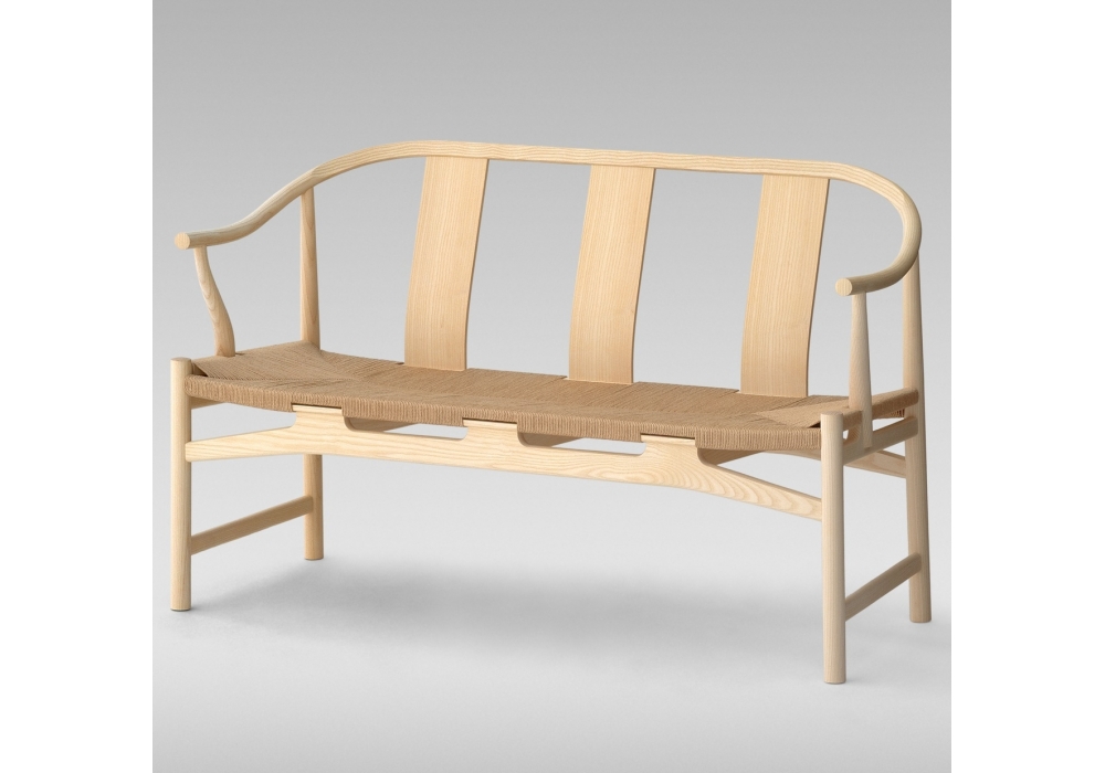 PP266 Chinese Bench, signed by Hans J. Wegner for PP Møbler, is a wooden bench with a papercord seat in natural colour. Feeling quite confident about the strength and agility of the pp66 Chinese Chair, Wegner was bold enough to develop the construction by designing a bench thus creating an even stronger character. For Wegner this is the only example of this kind of progression of shape and design, from wooden armchair to bench, and thus the Chinese Bench remains a unique and extraordinary accomplishment. The Chinese Bench remained a prototype until 1991 when it was finally possible to put it into production, thanks to the pioneering experiments at PP Møbler with the pre-compression wood bending technique. Still the Chinese Bench poses a great challenge to even the most skilled craftsmen, not merely because of the woodwork, but also because the long paper cord seat demands an unusual degree of accuracy in order to appear linear.