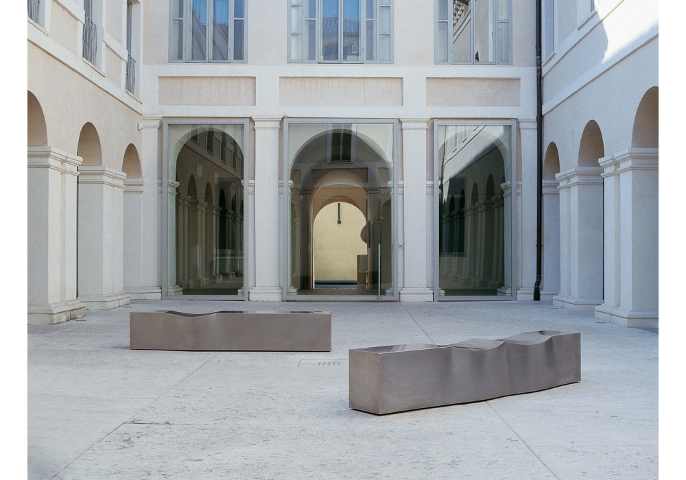 Dip & Double Dip designed by Chris Howker for B&B Italia Project is a minimalist bench in stainless steel, but also a real sculpture. Ideal for galleries, lobbies and other public spaces. bench used exclusively for indoor spaces.