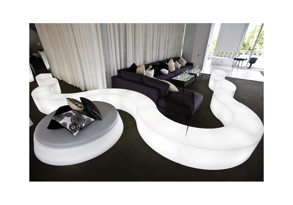 Snake conçu par SLIDE studio pour Slide est une banquette lumineux réalisée en polyéthylènepar rotomoulage. Il meuble les espaces intérieurs et extérieurs, et est idéal dans l’agencement de jardins privés ou de clubs à la mode. Volumes de lumière et de matière, c’est une combinaison réussie entre l’esthétique et la fonction.