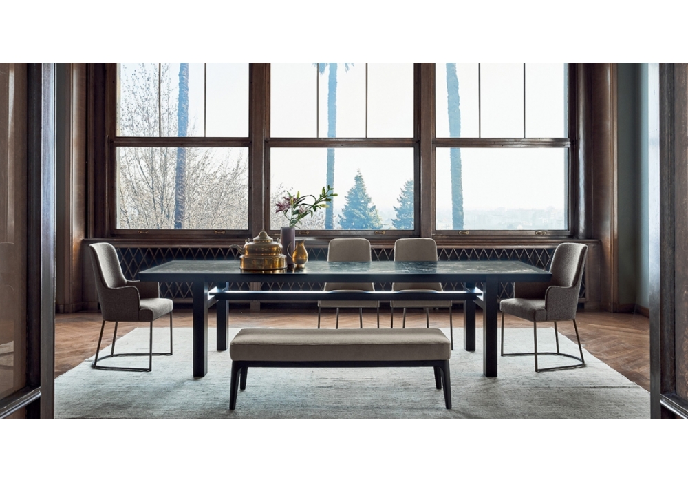 Timmy conçue par Roberto Lazzeroni pour Flexform est une banquette de la collection Mood. Siège avec rembourrage en polyuréthane et dacron recouvert d'une doublure en tissu protecteur. Structure en bois de frêne massif et revêtement en tissu ou en cuir disponible en différentes finitions.