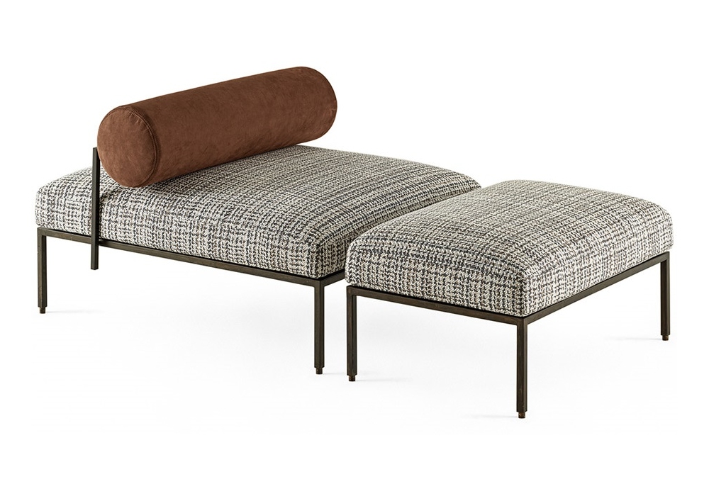 Oly conçue par Massimo Castagna pour Gallotti&Radice est une banquette et pouf avec structure en métal noir bronzé. Assis en polyuréthane expansé indéformable en densité variables et fibre de polyester et traversin du dossier revêtues en tissu ou cuir dans les coloris de nos échantillons. Sur demande, coussins décoratifs en fibre de polyester.