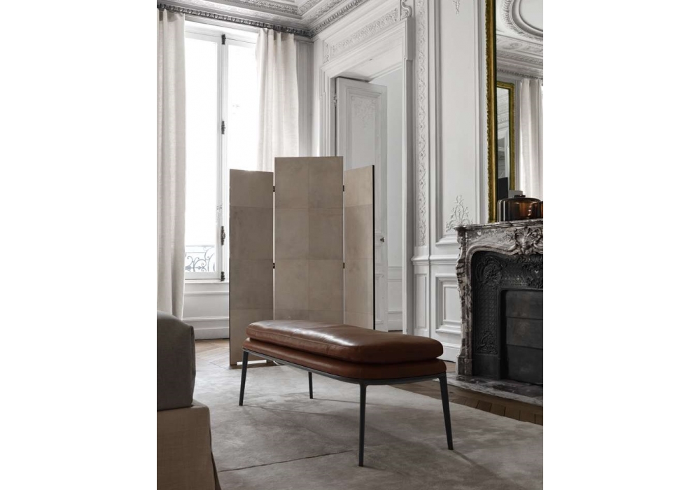 Caratos conçue par Antonio Citterio pour Maxalto est une banquette avec structure réalisée en métal et revêtement disponible en différents tissus ou cuirs.