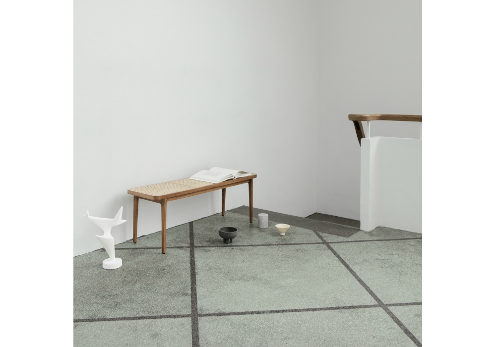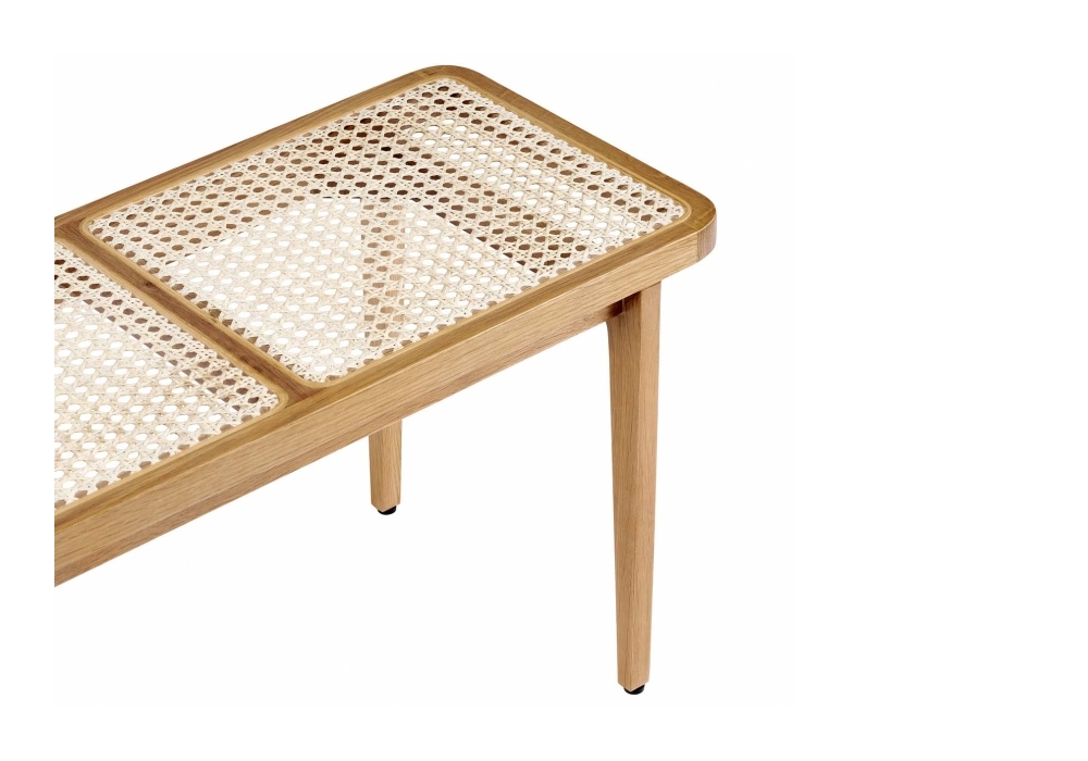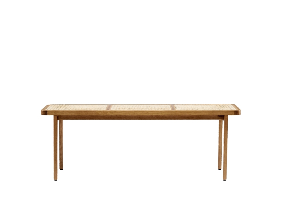 Le Roi Bench conçu par Kristian Sofus Hansen et Tommy Hyldahl pour Norr11 est un banc en frêne avec un siège en rotin.