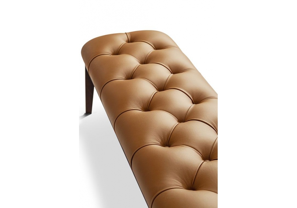 Glenn conçue par Roberto Lazzeroni pour Poltrona Frau est une banquette avec structure en contreplaqué de bouleau et rembourrage en mousse de polyuréthane. Le siège comporte un design capitonné obtenu par traitement manuel. Jambes en bois de frêne. Revêtement en cuir Pelle Frau.