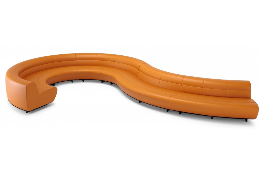 Foster 620 conçu par Norman Foster pour Walter Knoll est un banc rembourré modulable avec base en hêtre verni noir. Revêtement en tissu ou en cuir. Disponible en plusieurs configurations.