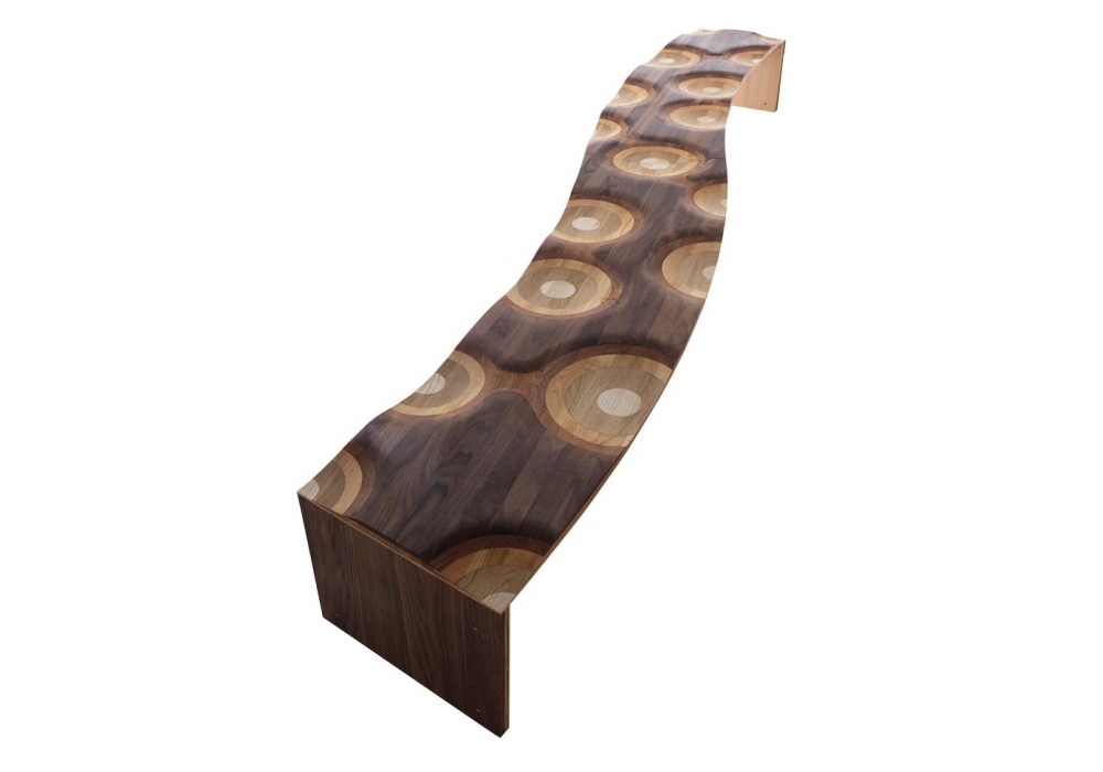 Ripples - Like a River conçu par Toyo Ito pour Casamania & Horm est un banc réalisé avec un contreplaqué spécial et exclusif de cinq types de bois différents (noyer canaletto, acajou, cerisier, chêne et frêne). Assise renforcée par une barre métallique cachée. Les modules A et B peuvent être combinés pour créer des compositions.