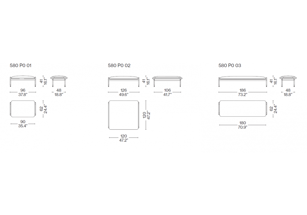 | Dimensions | 96 x 62 x H 41 cm; 128 x 120 x H 41 cm; 186 x 62 x H 41 cm. |