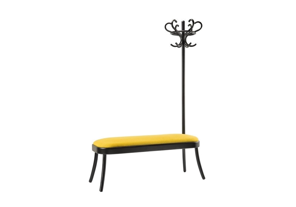 Coat Rack Bench conçu par Front pour Gebrüder Thonet Vienna est un banc portemanteau avec structure en hêtre courbé et assise rembourrée ou en paille de Vienne. Structure et revêtement disponibles en différentes finitions.